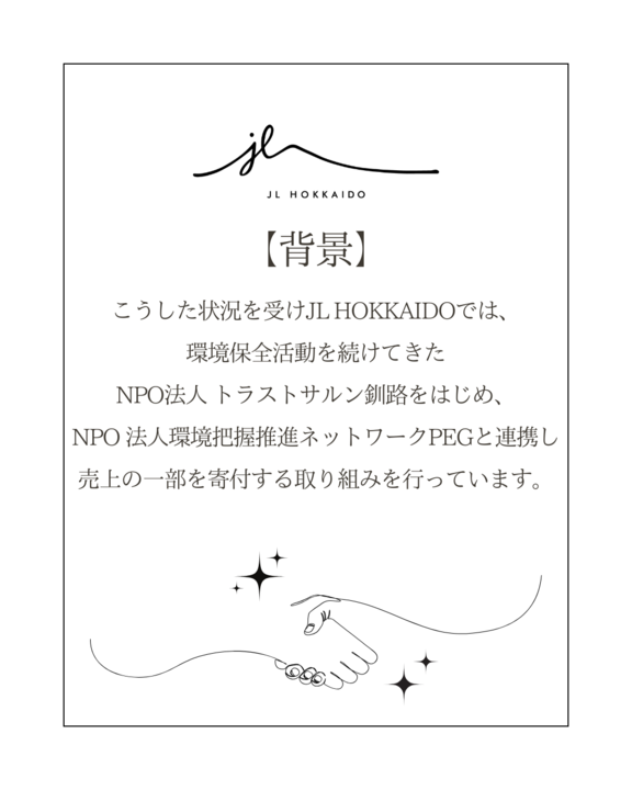 売上の一部は、環境保全活動を続けるNPO法人トラストサルン釧路へ寄付されています。