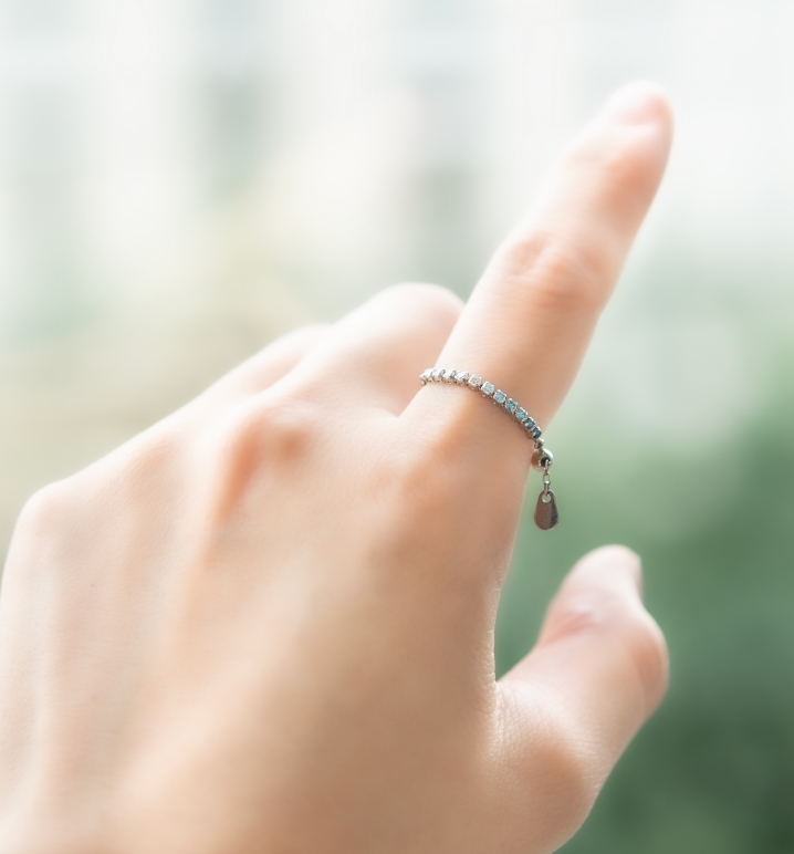 日ごとに表情を変えるつららの輝きを、ダイヤモンドのグラデーションで美しく表現。スライド式デザインではめる指ごとに装いを変えられ、その日の気分やスタイルに合わせたアレンジが楽しめます。